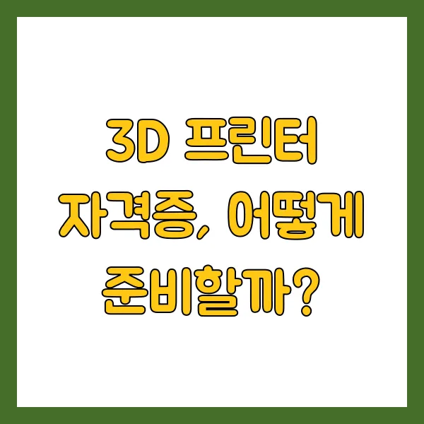 - 검정 내용: 3D 프린팅 이론 (재료, 소프트웨어, 장비 운용), 3D 모델링, 3D 프린터 출력 및 후처리 등 실무 능력 평가