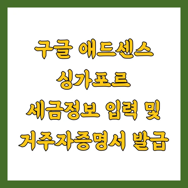 애드센스 수익금에 빨간불이 켜졌다고요? 싱가포르발 세금 폭탄, 걱정 마세요! 최근 구글 애드센스의 싱가포르 세금 정보 입력 요청 때문에 골머리를 앓는 분들이 많습니다. 갑 sprung up! 하지만 "조세 조약"과 "거주자 증명서"라는 마법의 단어만 알면, 세금 걱정 없이 애드센스 수익을 몽땅 지킬 수 있답니다. 대한민국 크리에이터라면 필독! 지금 바로 싱가포르 세금 정보 입력과 거주자 증명서 발급의 모든 것을 파헤쳐 보자고요!